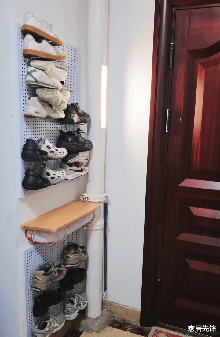 那么问题就来了,房子本来买的就小,一家四口的鞋到底往哪放呢?没有玄关,脱下来的鞋难道只能放门口吗?